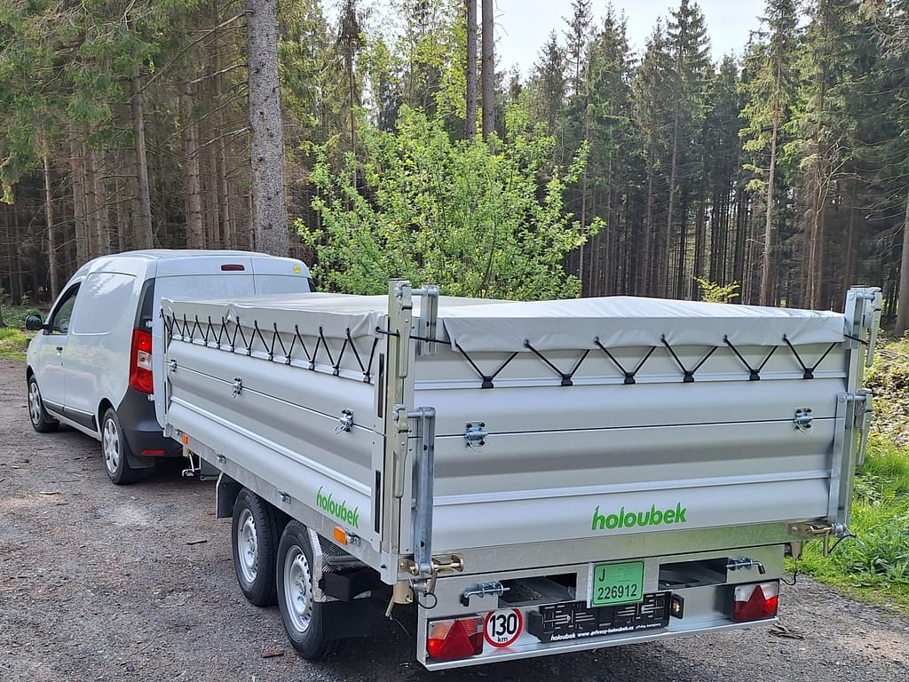 Nákladního přívěs, který vyniká sklápěním korby do tří stran. Vhodný například pro převoz sypkých materiálů, stavebního materiálu, suti, kamení, písku, dřeva, palet, stavebních strojů a mechanizace atd.